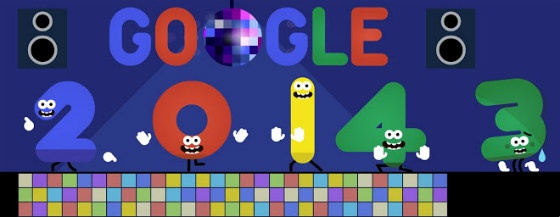New Year’s Day 2014 featured what might be our favourite Doodle so far. This animated logo features the numbers ‘2’, ‘0’, ‘1’ and ‘4’ grooving on the dance floor, with an exhausted ‘3’ standing to one side. Fun, original and very, very Google.