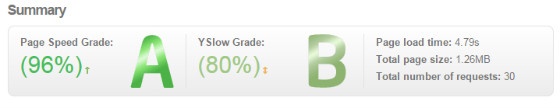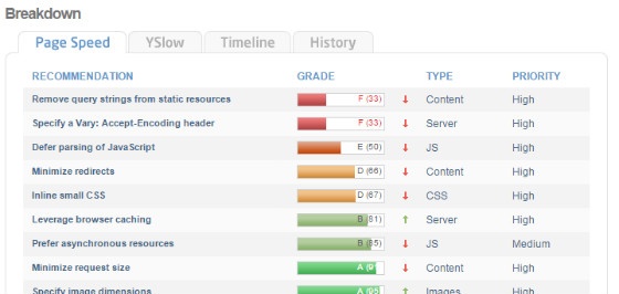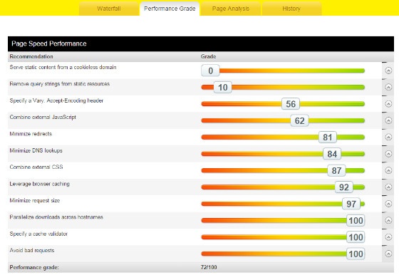 GTmetrix gives a score (percentage) out of 100 on how well the page is performing along with a grade: