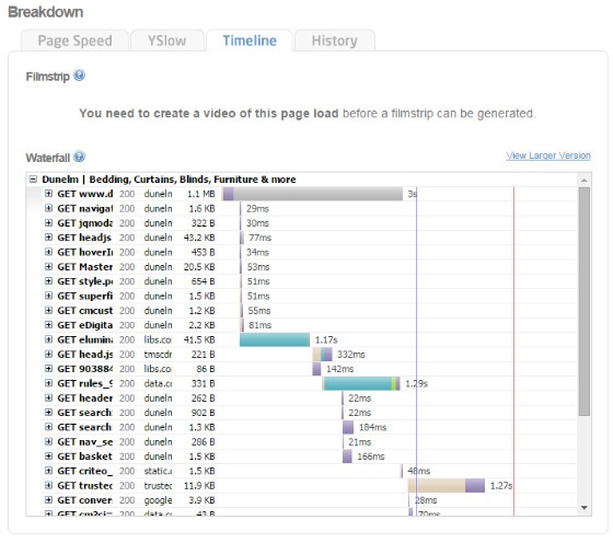 A breakdown of how the page was rendered is also provided, in a ‘Waterfall’ view: