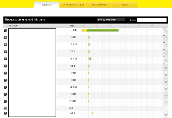 A breakdown of a page’s load time, total size of the page and total number of requests made to load the page are also provided, similar to GTmetrix.
