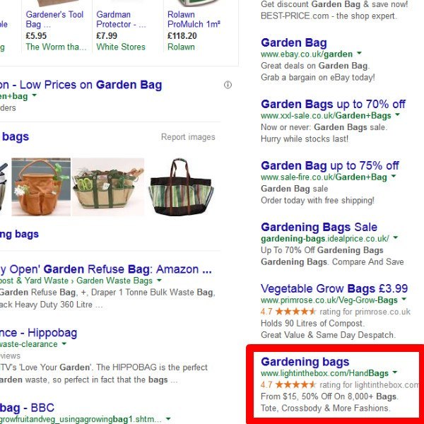 I joke. This is another easy trap to fall in to, but this ad needs weeding out – the URL even points to ‘/HandBags’.