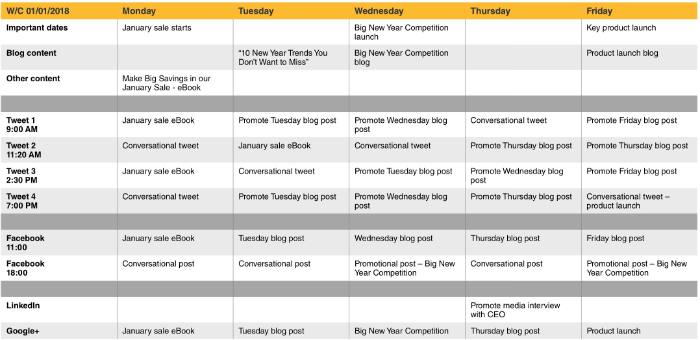 As a rule, any social media management tool will include some functionality for scheduling tweets, posts and updates. Even if you make extensive use of such tools, however, it can still be useful to map out your strategy on your content calendar.