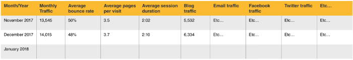 The table above is an example of a reporting dashboard for measuring engagement across various marketing channels. But you’ll almost certainly need to build in more detailed reporting capabilities than this. You can, and should, report at a much more granular level.