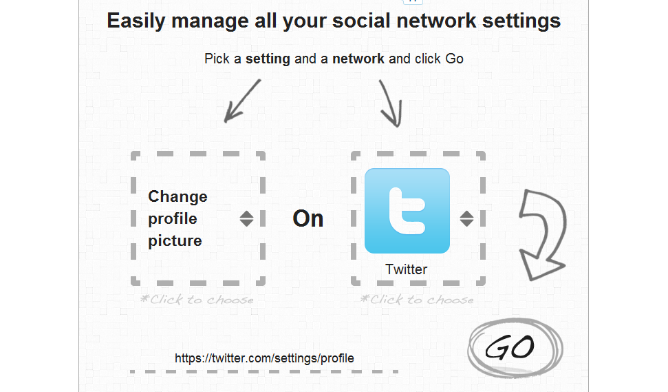 There is no need to sign up or share any password details, you simply choose which action you wish to take on a specific network and it will take you either to the log in page, or if you have the social site already open in another tab, it will take you to the correct settings page to make the change.