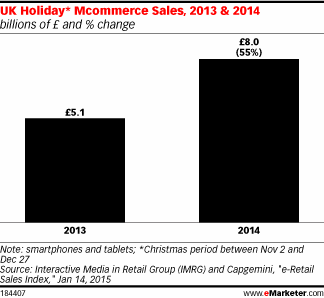 Online spending on mobile reached £8 billion between November 2 and December 27 last year, an increase of 55% on 2013.