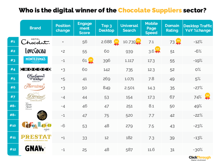 The Q2 2025 benchmarking report for UK chocolate suppliers has just been published. Learn how the top 12 UK chocolate suppliers perform across the digital space.