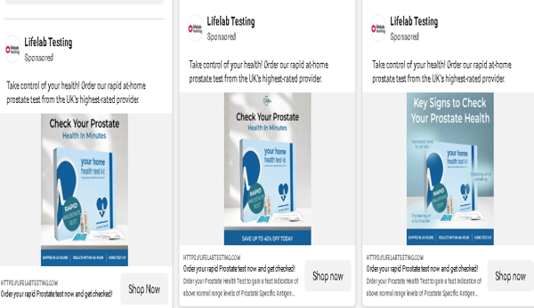 We’ve included screenshots of Lifelab Testing’s sponsored Facebook posts. This supplier used branded imagery to make their posts easily recognisable.