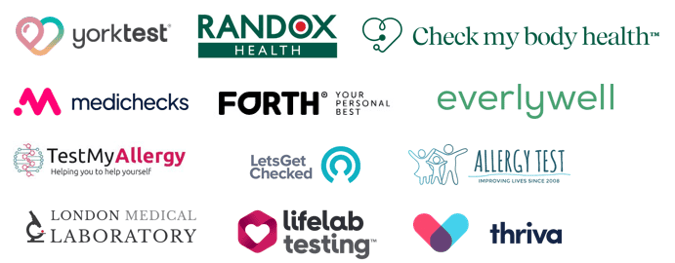 For a glance into just 6 of the metrics, we evaluated these top 12 UK home blood and allergy testing kit suppliers, check out our quick-look table below: