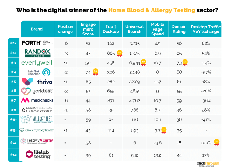 The Q3 2025 benchmarking report for UK home blood and allergy testing kit suppliers has just been published. Learn how the top 12 UK home blood and allergy testing kit suppliers perform across the digital space.